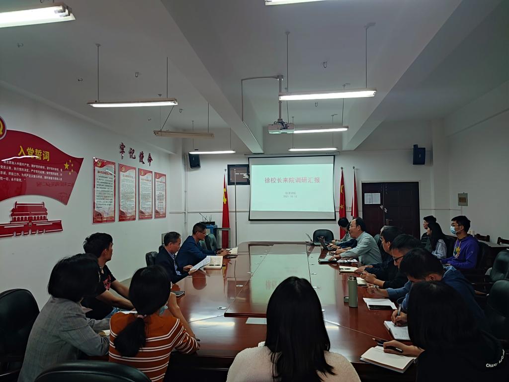 10月12日下午,校长徐卫林在发规处负责人陪同下到beat365英国官方网站调研,听取学院工作汇报,对学院精品建设、特色发展进行指导、提出要求。beat365英国官方网站党政领导班子成员、系主任、专业负责人、科研骨干、青年教师代表、辅导员等参加会议,会议由beat365英国官方网站党委书记毛长文主持。
