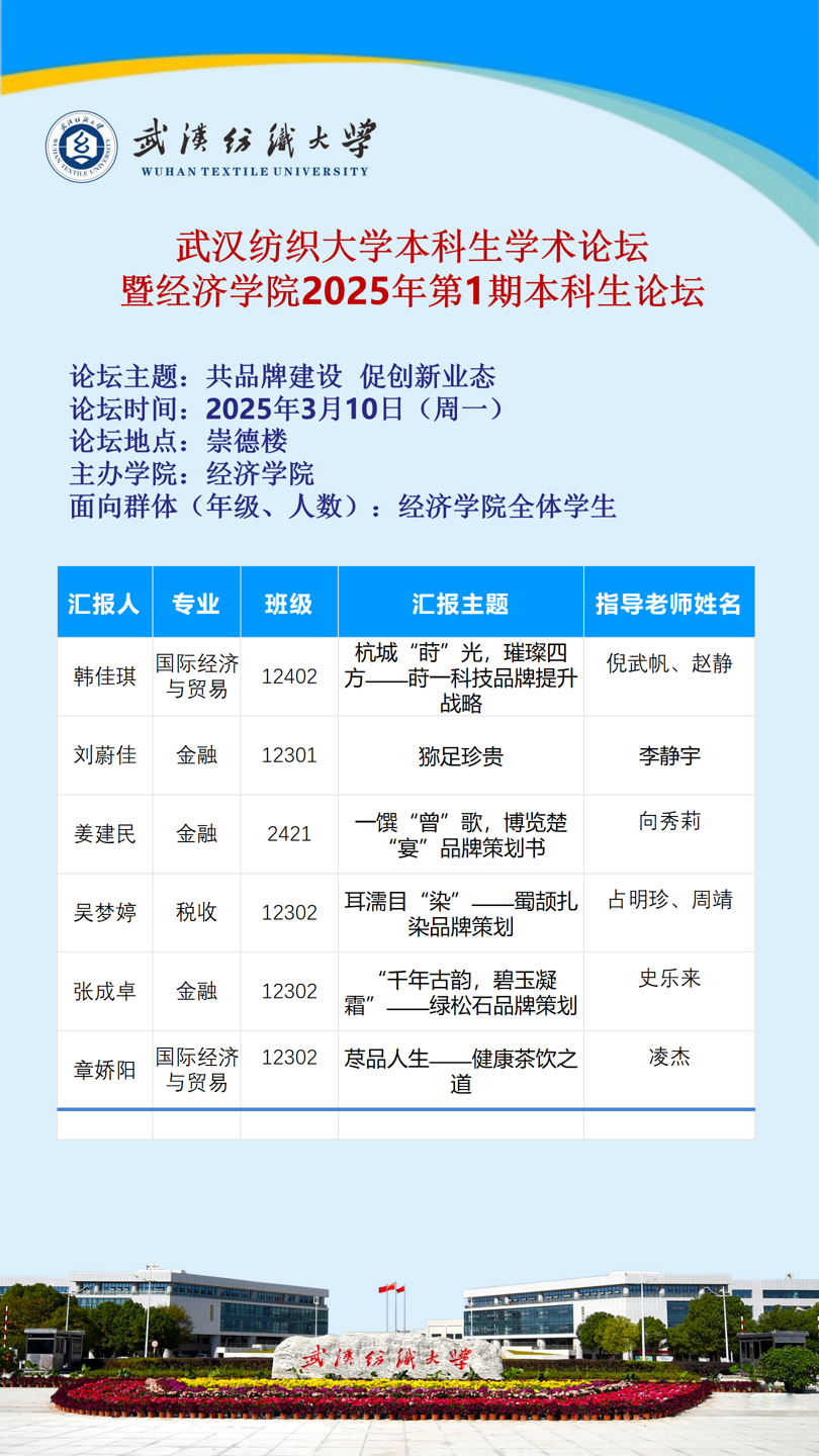 为培养学生的学术素养与创新能力,推动学科交叉与实践应用,2025年3月10日,学院在崇德楼举办以“共品牌建设 促创新业态”为主题的第1期本科生学术论坛。