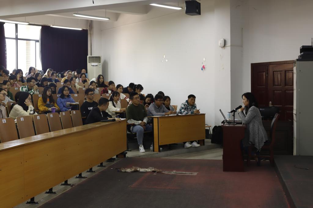 11月8日下午,beat365英国官方网站分党校第77期入党积极分子培训班第三讲在崇德楼T301报告厅举行,全国优秀教师、马克思主义学院副教授常沛应邀作主题为《不忘初心,牢记使命——新时代大学生党员的初心与使命》的精彩授课。beat365英国官方网站分党校第77期入党积极分子培训班全体学员200余人聆听了课程,党课由辅导员凌杰主持。