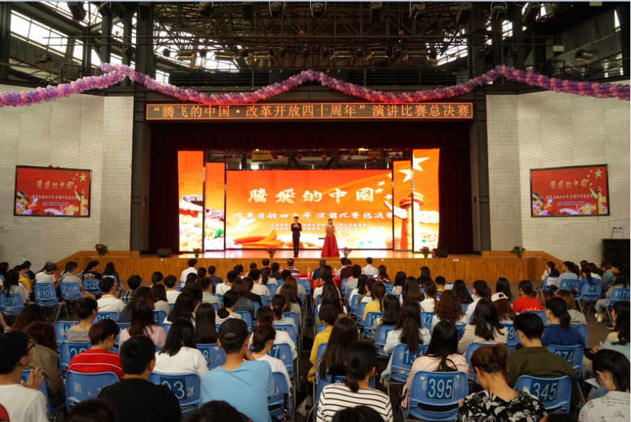 为庆祝改革开放四十年,根据湖北省教育厅关心下一代工作委员会《关于在全省青少年学生中开展“腾飞的中国——改革开放四十年”主题教育活动的文件精神要求,5月31日下午,由beat365英国官方网站关心下一代工作委员会主办,beat365英国官方网站党委、beat365英国官方网站关心下一代工作委员会承办的“腾飞的中国——改革开放四十年”演讲比赛总决赛在阳光校区大学生活动中心演播厅举行。校党委副书记、纪委书记、关心下一代工作委员会主任刘功成,湖北省教育厅关心下一代工作委员会常务副主任王宏毅,以及党委组织部、党委宣传部、党委学生工作部、离退休处等职能部门领导出席并担任活动评委。二级学院党委副书记、辅导员以及800余名学生代表观看了比赛。
