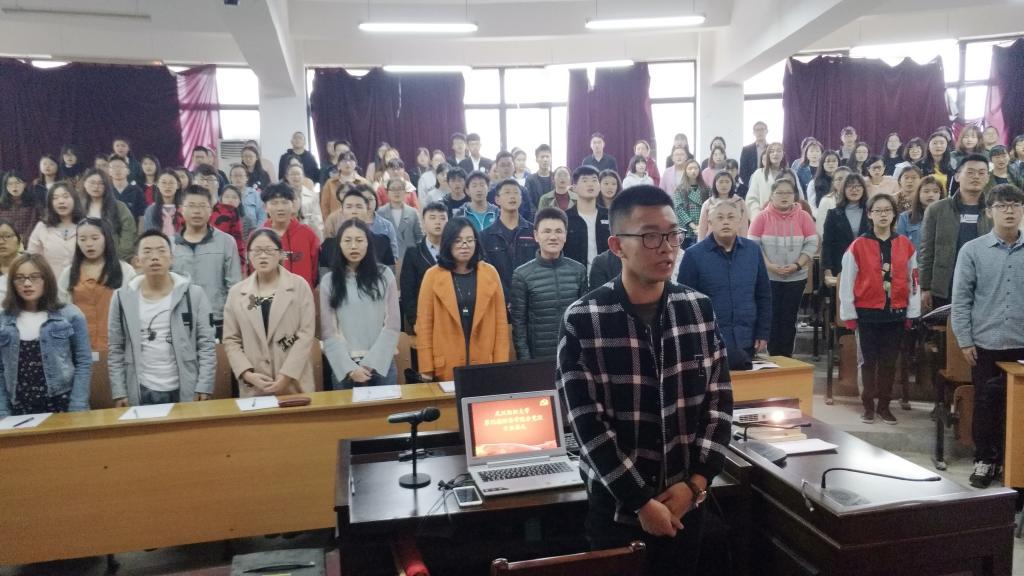 在党课开课前,学院还举行了简短的开班仪式。党员代表周尧尊以自身入党的事例,对党校学员提出了四点建议;入党积极分子吴荻秋代表全体学员发言并承诺。最后,金融学生党支部副书记郑文杰宣读了党课相关要求和纪律。