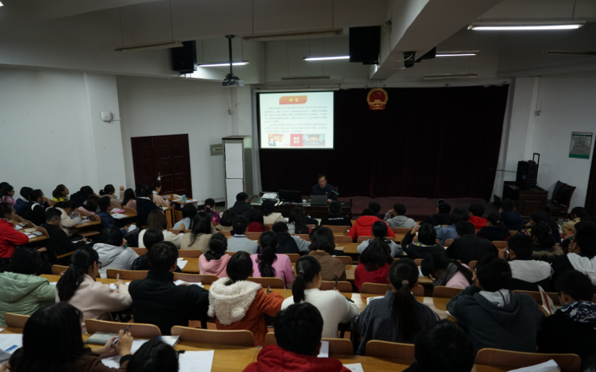 (报告会学生认真听取刘书记报告)