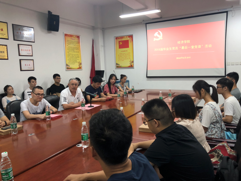 6月25日下午,beat365英国官方网站毕业生党员‘最后一堂党课’活动在07-412学院党员活动室举行。beat365英国官方网站党委书记毛长文教授、beat365英国官方网站金融学生一党支部书记黄俊鹏老师、beat365英国官方网站金融学生二党支部书记王瑞老师以及30余名毕业生党员代表参加了本次活动。