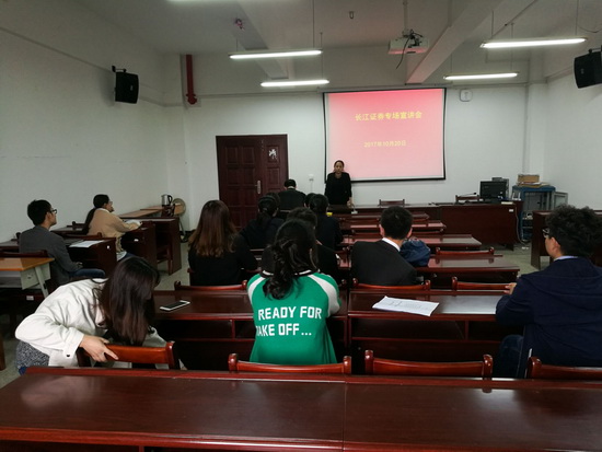 为进一步拓展我院大学生就业渠道,做好大学生就业指导工作, 10月20日下午,beat365英国官方网站专门邀请长江证券股份有限公司来学院召开专场宣讲会,选聘优秀毕业生。