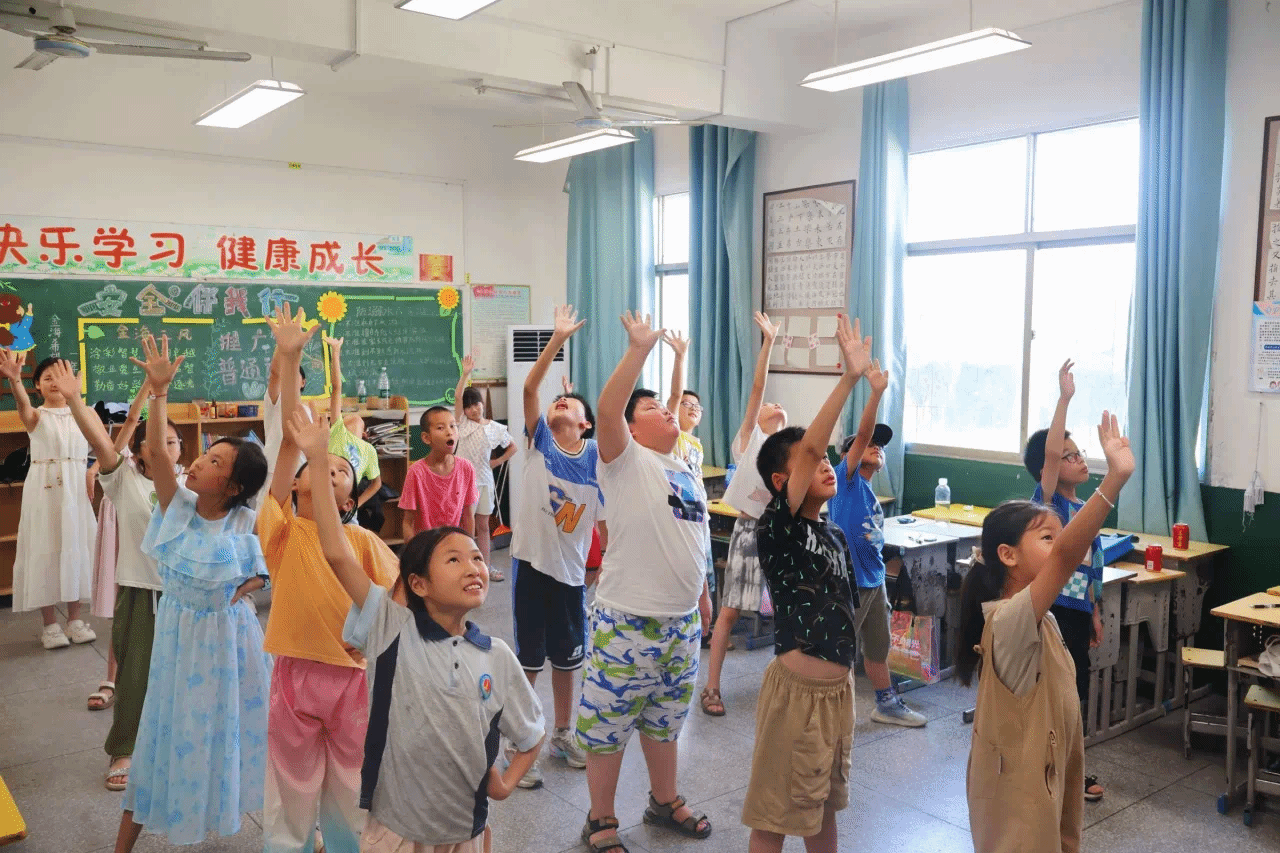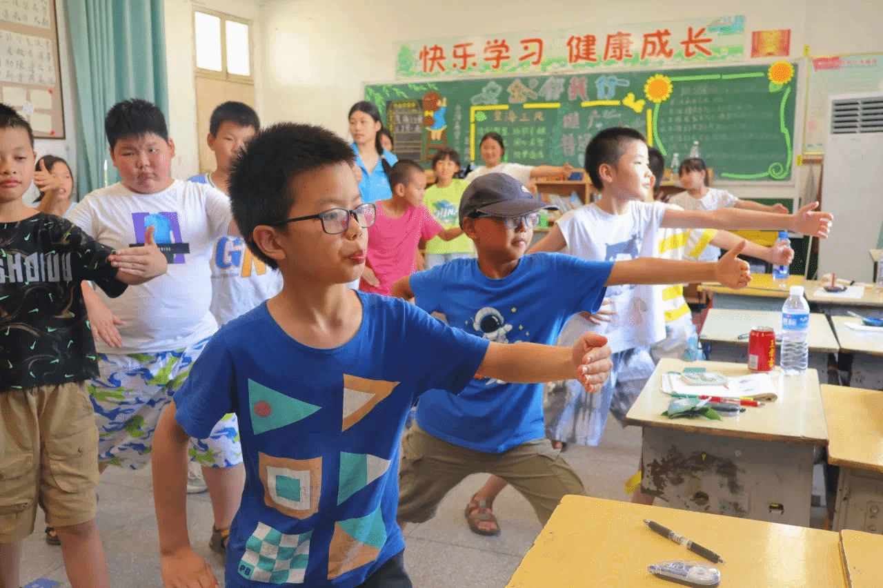 7月9日下午,beat365英国官方网站“乡育乡伴,‘经’彩一夏”支教队在湖北省鄂州市梁子湖区涂家垴镇金海希望小学点位教室内,开展“橙光跃动:活力运动促健康行”主题活动。通过打破“运动必在操场”的固有思维,支教队员将广播体操与太极拳巧妙融入室内空间,让方寸教室变身传递健康活力的舞台。