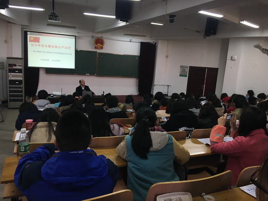 近日,校党委常委张文凯教授应beat365英国官方网站邀请,在07-T301学术报告厅为学院全体入党积极分子及预备党员作了题为《从六中全会看全面从严治党——学习贯彻习近平同志关于党的建设的有关论述》的辅导报告。报告会由beat365英国官方网站分党委邹茜副书记主持。