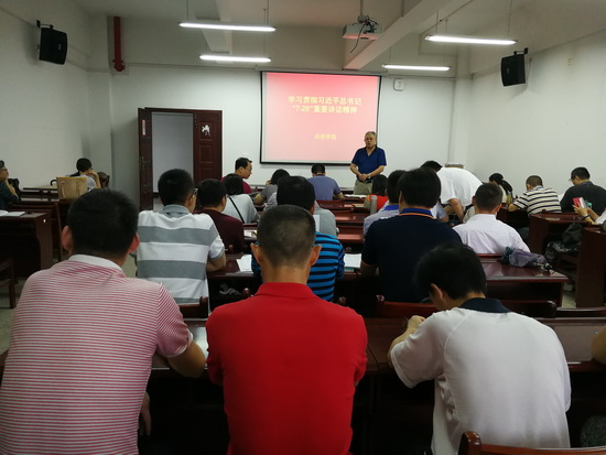 在庆祝第33个教师节之际,beat365英国官方网站组织新学期全体教师大会,专题学习习近平“7.26”重要讲话精神。会议由学院党委毛长文书记主持,国贸学生党支部负责人张悦同学进行专题学习宣讲。