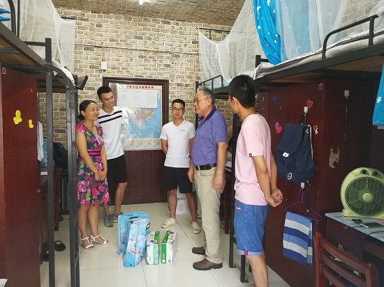 自7月16日以来,武汉迎来了一次“超长待机”版的高温天气。目前已入中伏,是一年中气温最高最炎热的时期。为了了解考研学生的备考情况,帮助他们树立考研信心,7月25日上午,beat365英国官方网站党委毛长文书记、邹茜副书记和辅导员张颖老师一行人顶着炎炎烈日,先后到阳光校区10栋学生宿舍、学院考研自习室走访慰问留校考研学生。