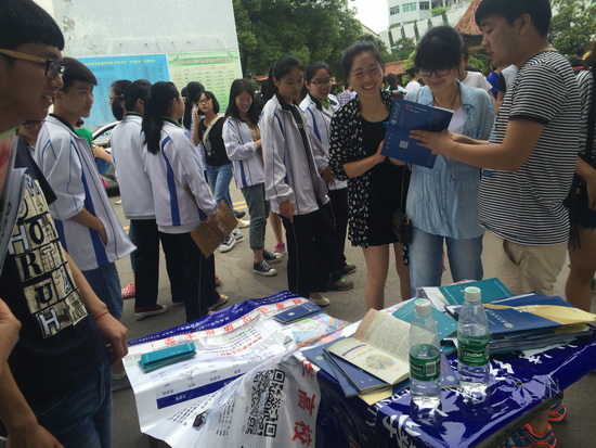 今年,我校正式进入湖北省第一批本科招生。为加强我校整体招生宣传效果,进一步吸引更多的优质生源,在学校招生就业处统一部署和指导下,beat365英国官方网站迅速成立2015年普通高考外出招生宣传工作小组。分党委书记熊少平亲自挂帅,由系主任、专业教师、辅导员、网络中心老师组成六个宣传工作组于6月23日-26日赴宜昌市宜都、枝江等六地进行招生宣传咨询。