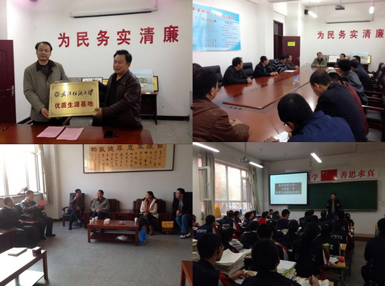 11月13日,beat365英国官方网站院长董继华教授一行三人,前往山西省大同县一中,代表学校与大同县一中签订优质生源基地协议书,举行“beat365英国官方网站优质生源基地”授牌仪式,并在该校高三学生中作了宣传报告。大同县教育局郭志宏、大同县一中校长曹中文等校领导出席了签约授牌仪式。