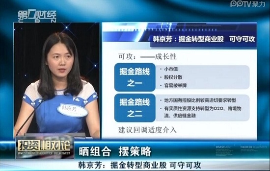 6月5日,我院韩京芳老师做客《投资相对论》节目,韩老师在节目中对大盘进行了分析,她认为沪指站上5000点面临一个高处不胜寒的状态,由于市场估值太高,获利回吐压力较大,加之政府严控场外配资,新股发行加速,市场将盘整震荡,若缺乏领涨板块大盘将面临向下调整。另外还重点介绍了如何掘金转型商业股的两个思路:寻找股权分散易于被举牌或有国企改革预期的商业股,投资者可以在控制仓位的情况下逢低介入。