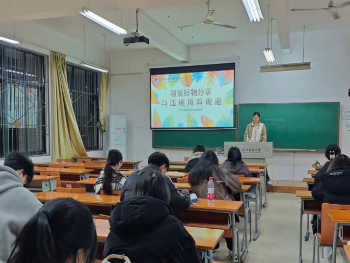 为进一步夯实寝室管理基础,提升寝室长的责任意识与实操能力,营造安全、和谐、文明的校园住宿环境,12月7日,学院于崇德楼举办以“寝室好物分享与违规风险规避”为主题的寝室长培训会。本次培训面向全院学生寝室长,旨在引导寝室长们不仅要做寝室安全的“守门员”,更要做美好宿舍生活的“定义者”和“分享者”。