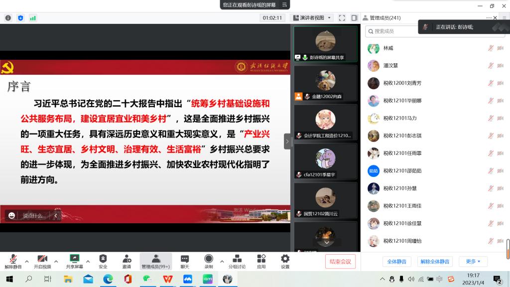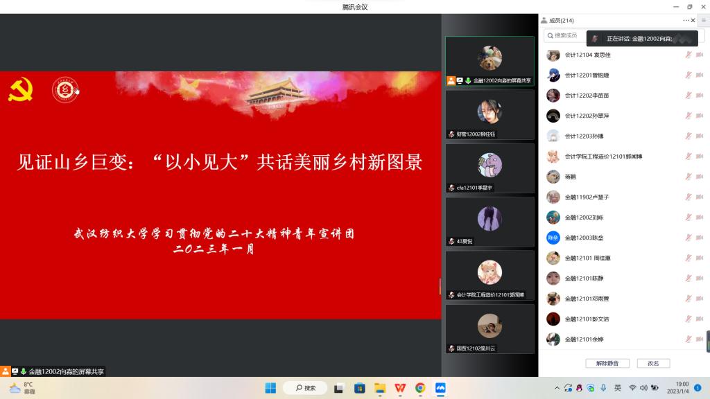 为进一步组织引导广大青年学生深入学习宣传贯彻党的二十大精神,坚定跟党走、建功新时代。根据《beat365英国官方网站学习贯彻党的二十大精神宣讲工作方案》部署要求,1月5日晚,学校青年宣讲团第六分团深入beat365英国官方网站、会计学院,通过腾讯会议线上平台面向两院青年学子开展党的二十大精神专场宣讲报告会,近300名青年师生参加报告会。