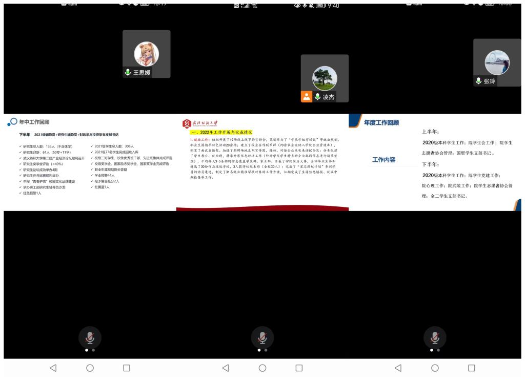会上,辅导员们分别围绕“工作目标完成情况、存在的问题、下一步工作计划”等三个方面作2022年度工作总结述职报告,报告用数据与事实说话,阐述业绩实事求是、分析问题精准客观、谋划工作思路清晰,大家讲问题、谈思考、话体会,在思想碰撞中加深工作认识与理解,积蓄工作动力。
