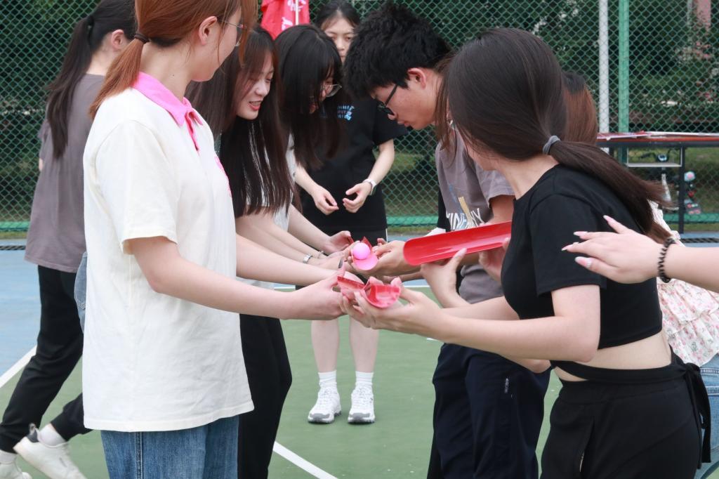 当日下午,学院学子举院旗入场,队列完毕并按照组织安排开展活动游戏。团队游戏有考验反应能力的“珠行万里”、锻炼平衡能力的“手脚并用”、一致合作的“同心击鼓”。还设置了心理知识竞答、投壶等兼具知识性与趣味性的个人项目。参与的学生们跃跃欲试,兴致盎然,于游戏中学习心理知识,于欢乐中完成团队合作,真正体现了“阳光、自信、包容、进取”的青春风采。伴随着欢声笑语,所有比赛项目圆满完成。最终,学院取得了团体第三名的佳绩。参与者杨锦玥表示:“这是一次新颖的活动,让我在繁忙的期末月能够好好放松,也让我感受到了团队合作的精神意义。”