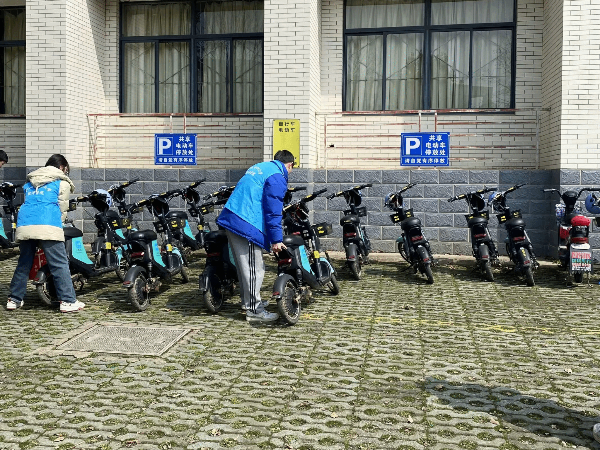 活动开展期间,志愿者们以高度的责任心和使命感,分工明确、协同合作。他们细心地将人行道上乱停乱放的电动车移至指定区域,确保每一辆电动车都整齐划一地停放在车位上。同时,志愿者们还积极向过往的同学宣传文明停放电动车的重要性,并提醒他们将车辆停放在规定位置,共同维护道路通畅和校园环境美观。