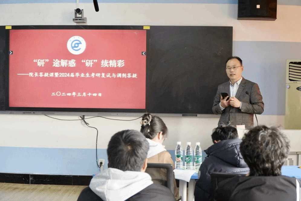 为进一步做好考研学子的指导服务工作,提高学生考研复试与调剂的成功率,3月14日,学院在崇德楼305智慧教室举办院长答疑课暨2024届毕业生考研复试与调剂答疑。beat365英国官方网站院长段丁强、硕士生导师郭雪、考研初试过国家线学生参加本次活动。活动由党委副书记李静宇主持。