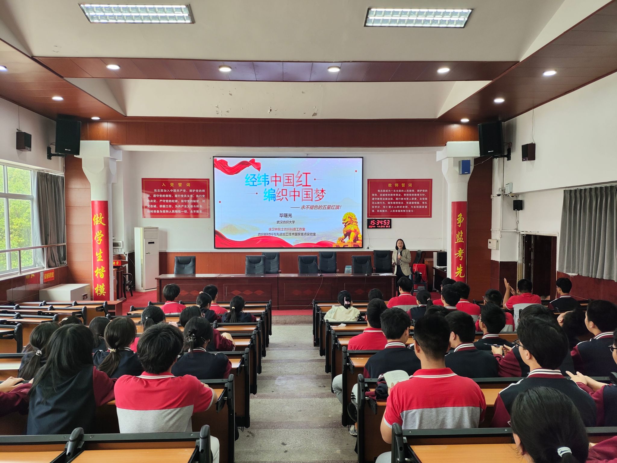24日下午和25日上午,在仙桃中学与仙桃一中,罗锦银与仙桃市教育局、招生考试院负责人及相关高中校领导、高三年级班主任进行交流座谈,为两校授牌“beat365英国官方网站优质生源基地”。他代表学校感谢仙桃市教育局及生源中学长期以来对学校招生工作的大力支持,为我校培养和输送了大量优秀学子,向与会人员推介了学校的办学历史、发展成果、学科特色、教育理念、专业设置等方面的情况,宣讲了学校的招生政策,诚挚邀请生源中学的师生到学校考察交流,实地感受美好纺大。他表示,学校将继续加强与仙桃市教育局和各生源中学的交流合作,全力为接续培养好仙桃籍优秀学子探索建立更具特色、更高质量、更富成效的育人平台,期待双方携手共进,深化教育合作,共筑人才高地。会上,与会人员就高考志愿填报、学校育人理念、特色育人活动、大中小思政课一体化建设等方面展开深入交流。仙桃市教育局和各生源高中负责人纷纷表态,将全力支持学校招生工作,有针对性的推荐更多优秀学生报考我校。在两所生源中学,湖北省科普讲解大赛一等奖、十佳科普使者、省部共建纺织新材料与先进加工技术国家重点实验室毕曙光教授以《经纬中国红,编织中国梦——永不褪色的五星红旗》为主题,面向师生开展科普讲座,结合学校办学特色,讲授了月面国旗“耀眼的中国红”的故事,推介了学校的办学实力与科研成果,加深了大家对学校的认识和了解,增强同学们对国家象征的认识和尊重,赢得了师生们阵阵掌声,现场互动交流热烈。在仙桃一中,罗锦银一行还与学校师生一起参加了升旗与出操仪式。