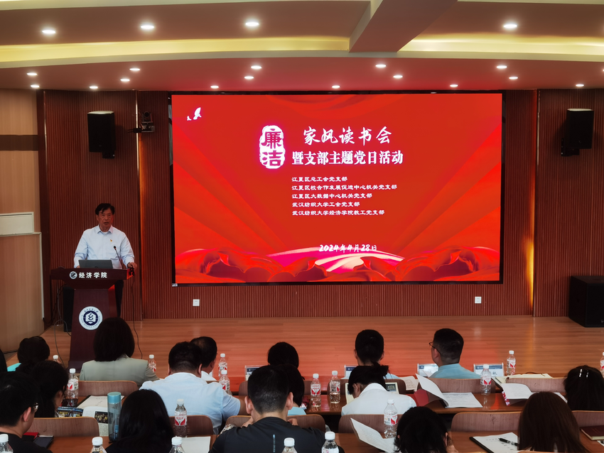 交流分享阶段,首先由beat365英国官方网站党委书记刘园美讲授了一堂廉洁微党课,从“半条被子”的故事说起,深入剖析、解读红色基因,红色基因中的廉洁元素,实践中如何传承红色基因,红色基因照亮廉洁之路,为大家提供了有力思想和实践指导。随后,来自不同单位的3名党员代表围绕廉洁家风这一主题,结合实际工作和生活经历,畅谈了对遵纪守纪、廉洁从政、清廉生活的认识与经验做法。最后,纺大杨洪林教授慷慨激昂地分享了其对江夏历史文化的理解、教书育人的准则,展现出的不拘一格降人才的胸怀与严于律己、严于育人的气度,让在场的每一位党员干部折服与感动,多次响起激烈的掌声。