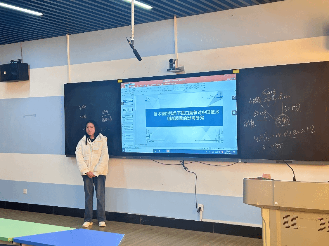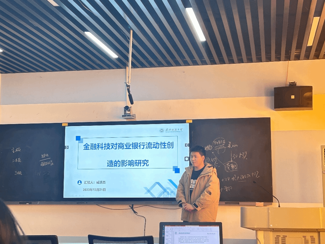 论坛上,六名主讲人分别从研究背景、研究思路以及研究结论等方面分享他们最近的学术研究成果。周贝同学结合当前中国的创新发展陷入“低质”的现状,提出技术差距视角下进口竞争对中国技术创新质量的影响研究;戚浩杰同学着眼于金融科技迅速发展的背景,进一步探讨金融科技对商业银行流动性创造的影响研究;彭杰同学结合优序融资理论、信息不对称理论、市场力量假说理论以及信贷配给理论,探究银行竞争的发展对企业创新质量的影响;田思稳同学基于贷款结构的研究视角,提出金融科技对商业银行流动性创造的影响研究;刘博文同学基于数字普惠金融的研究视角,研究银行集中度对中小企业融资约束的影响;曹阳同学在“数字湖北”建设背景下,探讨如何借助数字普惠金融助力乡村振兴。每位同学将自己的研究方法和研究成果从各自不同的角度进行阐述,内容完整,循序渐进,深入浅出,充分展现出我院研究生的学术实力和科研水平。