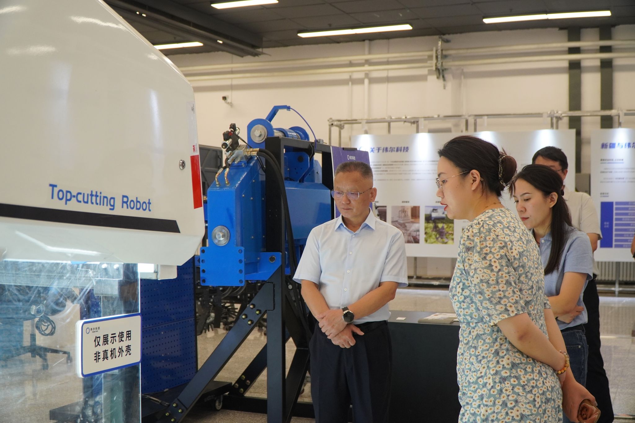 在新疆溢达农业科技孵化有限公司(溢达创研村),负责人马安然向罗锦银等介绍了创研村规划建设、科创发展战略、运营状况和入驻企业发展情况,实地调研了无水染色技术、染色盐回用系统、棉花智能打顶机器人、新疆特色农林废弃物提取天然染料等绿色黑科技,双方共话纺织产业绿色、时尚、科技新发展和纺织企业产业链延伸。