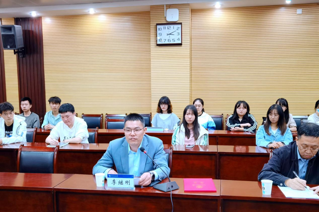 仪式上,我宣读了《关于聘任李继刚为我校客座教授的通知》,并简要介绍了李继刚校友的基本情况。指出,聘请客座教授是我校推进开放办学,深化校企合作,推动学校发展的重要举措,是落实学校人才强校战略、师资队伍建设工作的重要组成部分。希望李继刚教授常回母校看看,号召大学生向李继刚学长学习,更加坚定纺大自信,将纺大精神发扬光大。