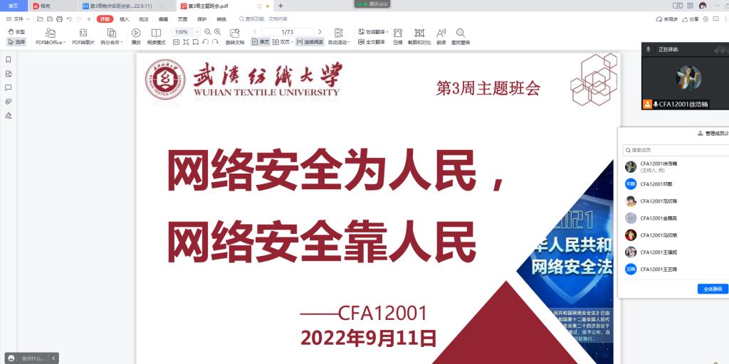 为宣传网络安全知识,增强学生网络安全意识,9月11日,我院组织开展“网络安全为人民,网络安全靠人民”主题班会,会议由各班班主任主持召开。