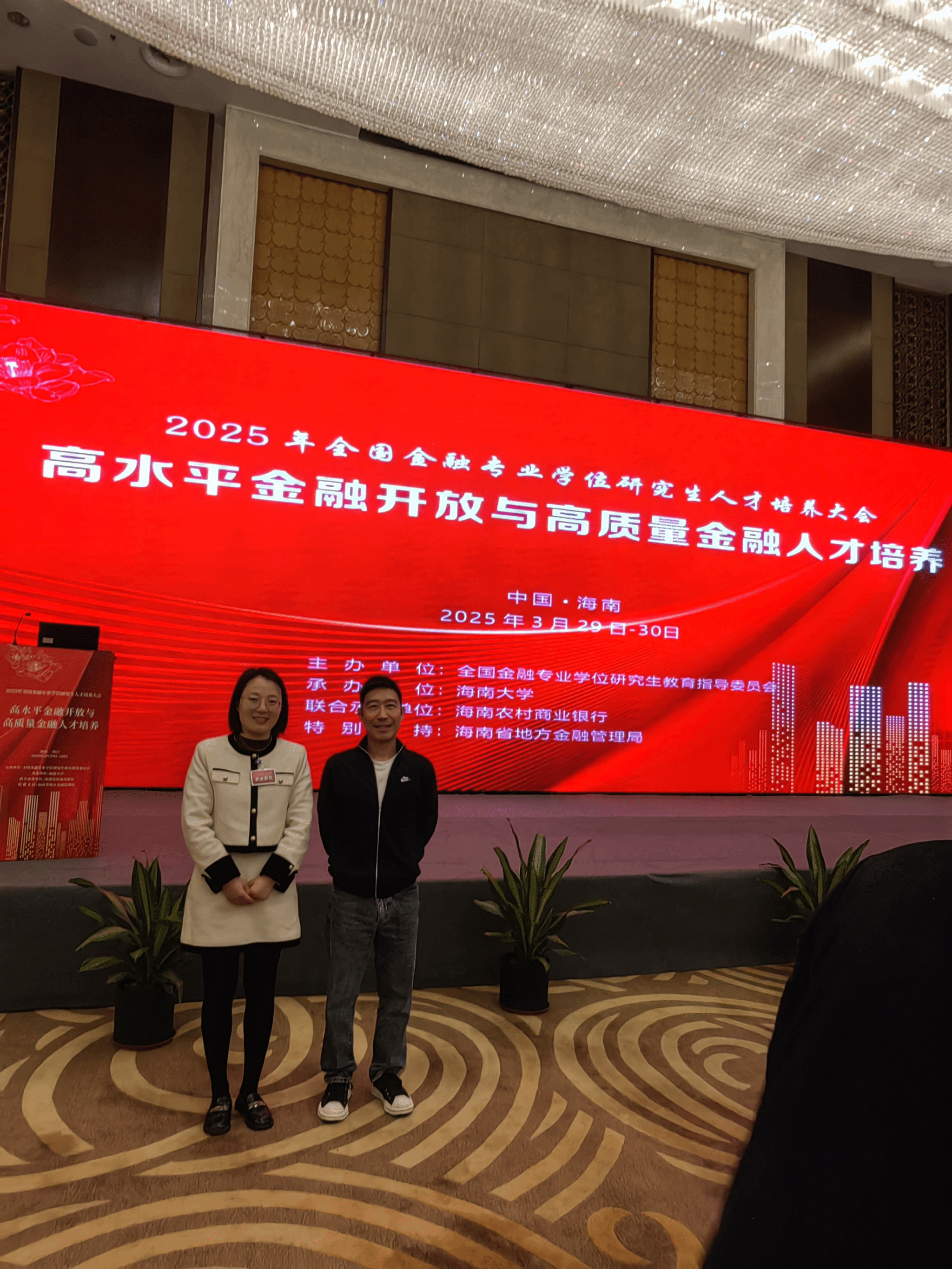2025年3月30日,第三届全国金融专业学位教指委第五次会议暨2025 年全国金融专业学位研究生人才培养大会在海南隆重召开。此次大会汇聚了来自全国各地的金融教育领域专家、学者及高校代表,共同探讨金融专业学位研究生的培养策略与未来发展方向。beat365英国官方网站副院长王滨教授和MF中心负责人孙红博士一起参加了此次盛会。
