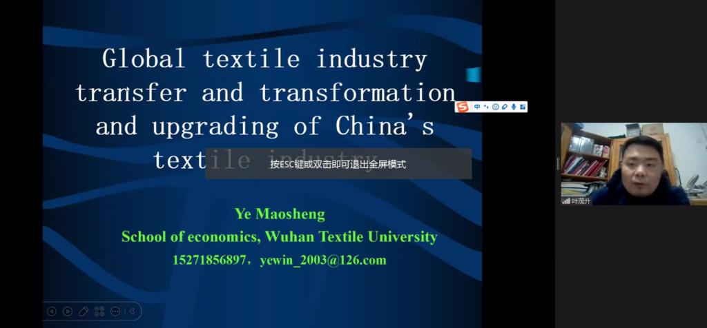 From September 2022 to December 2022, more than ten teachers of our college, including Li Zhengwang, Ye Maosheng, Sun Hong, Zhan Mingzhen, Jiang Luwei, actively participated in the "Seminar on Economic Globalization and Made in China for Developing Countries", "Seminar on South-South Cooperation for Promoting Economic Development in Africa " and other seminars sponsored by the International Exchange and Cooperation Office of Wuhan Textile University. The teachers who participated in the course had in-depth exchanges and discussions with students from Africa, Southeast Asia and other countries in China's economic transformation, textile industry development, enterprise innovation and other fields, told Chinese cultural stories, introduced Chinese cases of enterprise innovation, and introduced the latest experience of China's economic transformation and development. Through these training and Chinese foreign cultural exchange projects, the teachers from Economics School introduced their latest research achievements, conveyed the voice of the School of Economics, demonstrated the distinctive technological advantages and strong cultural heritage of the textile industry, and made contributions to Chinese foreign cultural exchanges.
