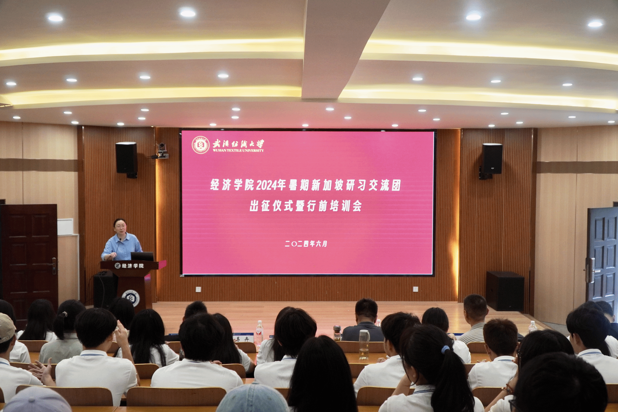为丰富育人载体,拓展学生的国际视野,6月17日,学院于崇德楼T301会议室召开2024年暑假境外研习交流团出征仪式暨行前培训会。党委书记刘园美,副院长王滨、李正旺,湖北罗客智学教育科技有限公司国际教育项目经理彭婷婷,国际教育学院老师李佳星,学院教师代表、优秀学生代表和参加本次研习活动的全体同学出席会议。会议由学院党委副书记李静宇主持。