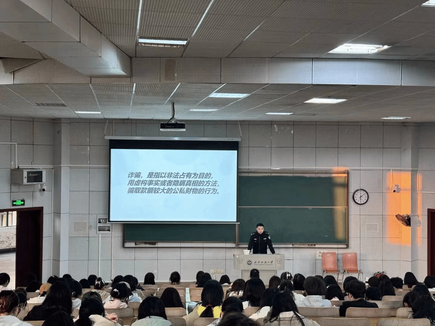 为切实增强学生的防诈骗意识,营造安全稳定的校园环境,3月23日,学院在崇德楼T302开展了“识骗防诈,共筑安全校园”主题教育活动。本次活动邀请江夏公安分局庙山派出所警官伍文捷主讲,由24级辅导员徐钰主持。