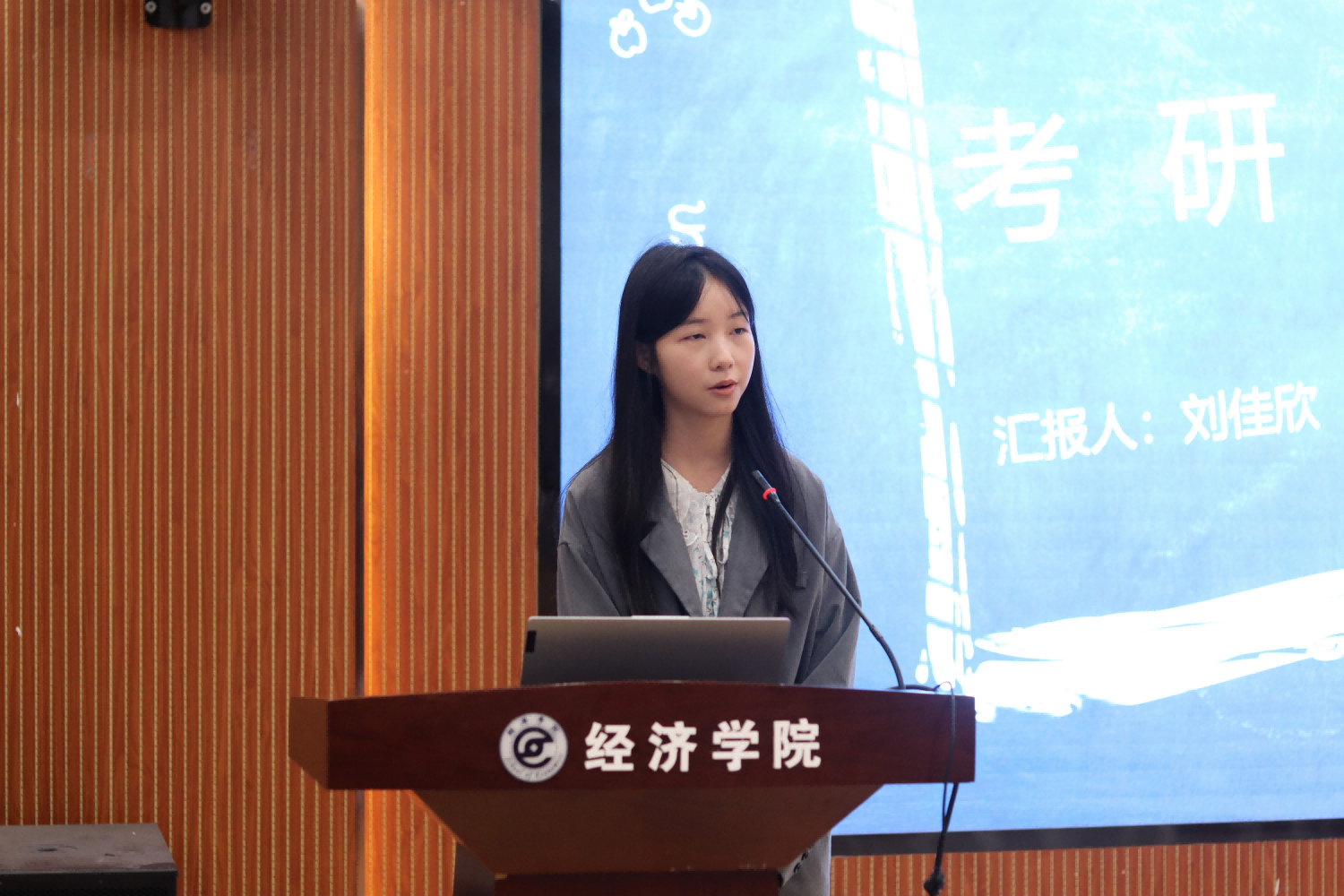 张靖康和刘佳欣以“考研经验分享”为题分别介绍了自己的考研心路历程,并进行了经验方法分享。他们先后提到“心态”“择校”“执行力”几个关键词。在张靖康看来,通往成功的道路必然是辛苦的,他勉励大家要一战到底,不要放弃。刘佳欣表示选择大于努力,适合自己的才是最好的,有自己的时间规划在很大程度上能在考研途中帮助自己。