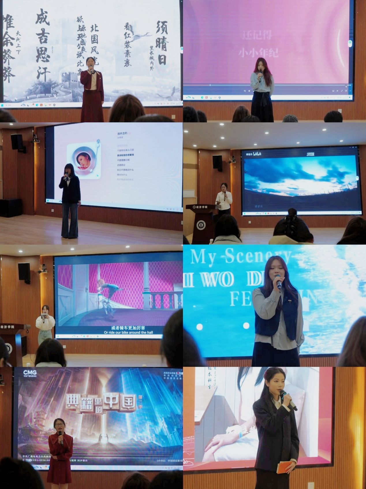 比赛共设个人展示、自备稿件朗诵、才艺表演、即兴评述四大环节。选手们选取《月光下的中国》《楚辞》节选等经典著作,围绕家国情怀、文化传承等主题展开精彩演绎,彰显了扎实的文本理解力和情感感染力。才艺表演环节形式多样,涵盖民族舞蹈、流行歌曲演唱、影视片段配音等,充分展示了学生课堂之外的文艺风采。即兴评述环节则聚焦“大湾区吉祥物‘中华白海豚’的象征意义”“校园‘人民咖啡馆’的服务理念”“当代大学生频繁离家现象的社会思考”等现实议题,选手们逻辑清晰、见解独到,体现出良好的思辨素养与时代关切。整场比赛气氛热烈,高潮迭起,充分展现了我院学子昂扬的精神面貌与多元的才华潜能。
