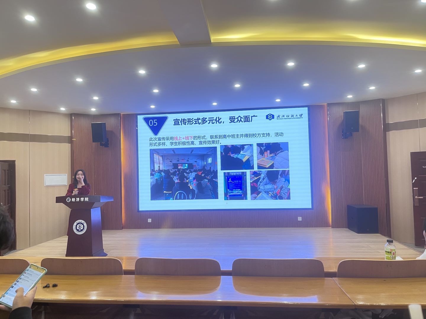 熊敏从活动目的、活动形式、活动要求三个方面展开了宣讲。她表示,“把最美纺大带回母校”活动是一次提高学校影响力、提升学生社会实践能力、增加学生对学校认知度的重要机会,参与者应勇于创新,积极实践,热情展现纺大学子的精神风貌。覃丽分享了第四届活动中获奖的经验,由个人特长,团队组成到表现形式,答辩技巧依次展开,她鼓励本届参与活动学生对活动内容进行“多角度、多渠道、多形式”的创新,并对同学们的提问做出耐心解答。