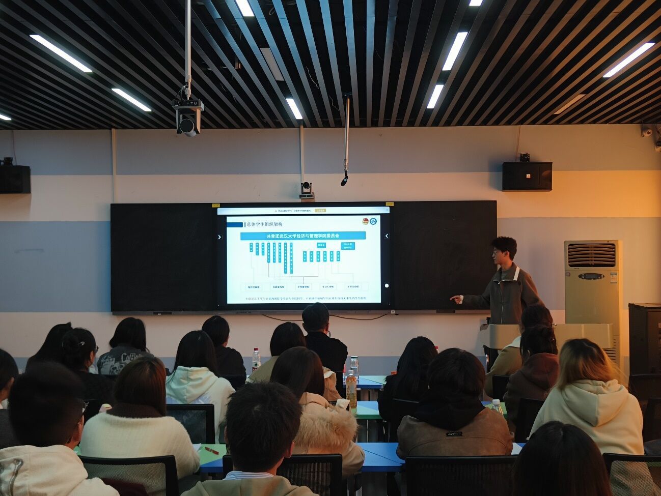 为不断加强对学生骨干的政治训练和思想引领,切实提高学生骨干政治素质和履职能力,11月19日,beat365英国官方网站2023年“青马工程”培训班在崇德楼305智慧教室开展第二次学员培训。武汉大学经济与管理学院学生会执行主席黄竞标应邀为培训班学员讲授第二讲。