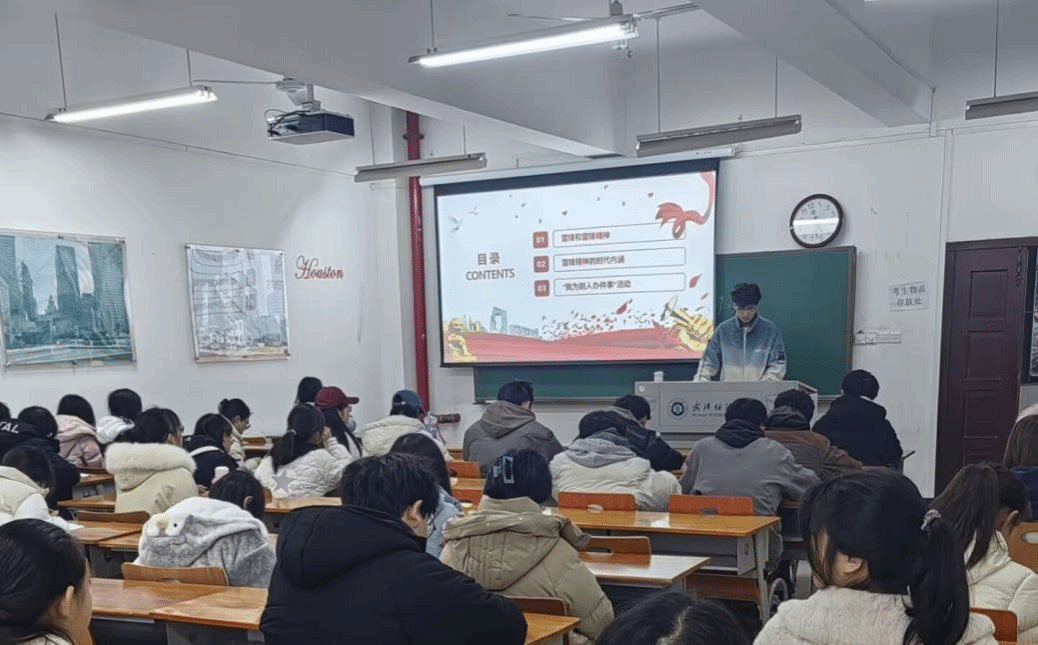 雷锋精神不仅要内化于心,更要外化于行。为动员班级同学积极投身到校园、社会实践服务中去,各班团支书组织同学们共同了解雷锋的先进事迹,深入学习雷锋精神的核心价值和时代内涵,深度挖掘雷锋精神在当代社会的体现等一系列讨论活动,极大地激发了学子们学习雷锋、争做雷锋的热情。作为一名在校学生,怎样才能做好一名新世纪雷锋?“寝室卫生勤打扫”“路边垃圾随手拾”“倒地单车顺手扶”“离开教室关好灯”……学子们各抒己见,畅所欲言,立志做到所言即所行。