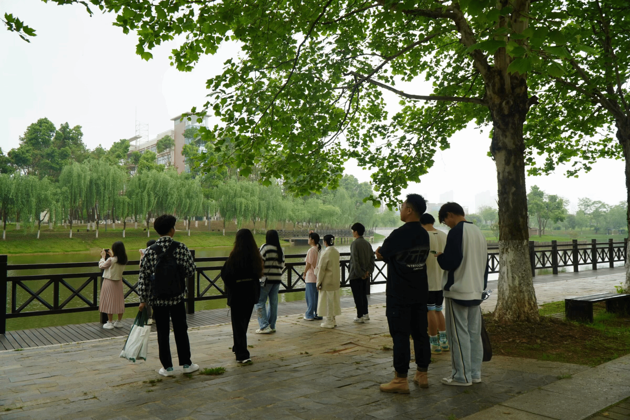 活动期间,学院发展联络部成员带领来访人员参观校园,在湖边欣赏春日美景,看黑天鹅在岸上嬉戏打闹;缓步在黄道婆雕像前,介绍黄道婆于纺织的民间故事;参观一站式学生社区,领略学生榜样风采。