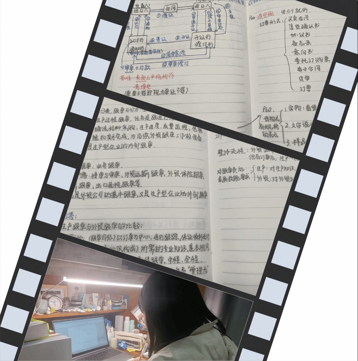 经过层层筛选,本次活动选出了财政12201谭荣琴(税法)、国贸12101晏雨涵(宏观经济学)、国贸12102李雨夕(纺织服装外贸跟单)、国贸12201张如昱(概率论与数理统计)、金融12002向淼(高等数学)等15位同学的优秀“学霸笔记”。其中,谭荣琴分享了学习过程中的心得与体会,表示学习税法必须时刻保持学习的热情和动力,多关注时政新闻,以适应税法的变化和发展;晏雨涵也分享道,“在学习一门新课程期间,跟随老师进度做笔记是一个很好的习惯”;向淼从“预习-课堂-课后”三个步骤,向同学们详细分享了学习高等数学的方法和个人收获。