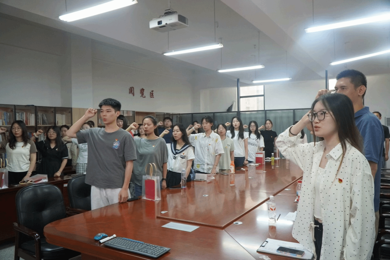 随后,老师们为毕业生党员代表过“政治生日”,赠送“纪念礼品”。毕业生党员代表代孟欣带领大家重温入党誓词,激励党员们坚定理想信念,强化使命担当,时刻以党员的标准严格要求自己。凌杰对毕业生党员党组织关系转接、党员档案等内容进行了解读,强调了转接中的注意事项,提醒毕业生党员及时按照要求完成转接工作,关注个人材料的去向与内容完整性。