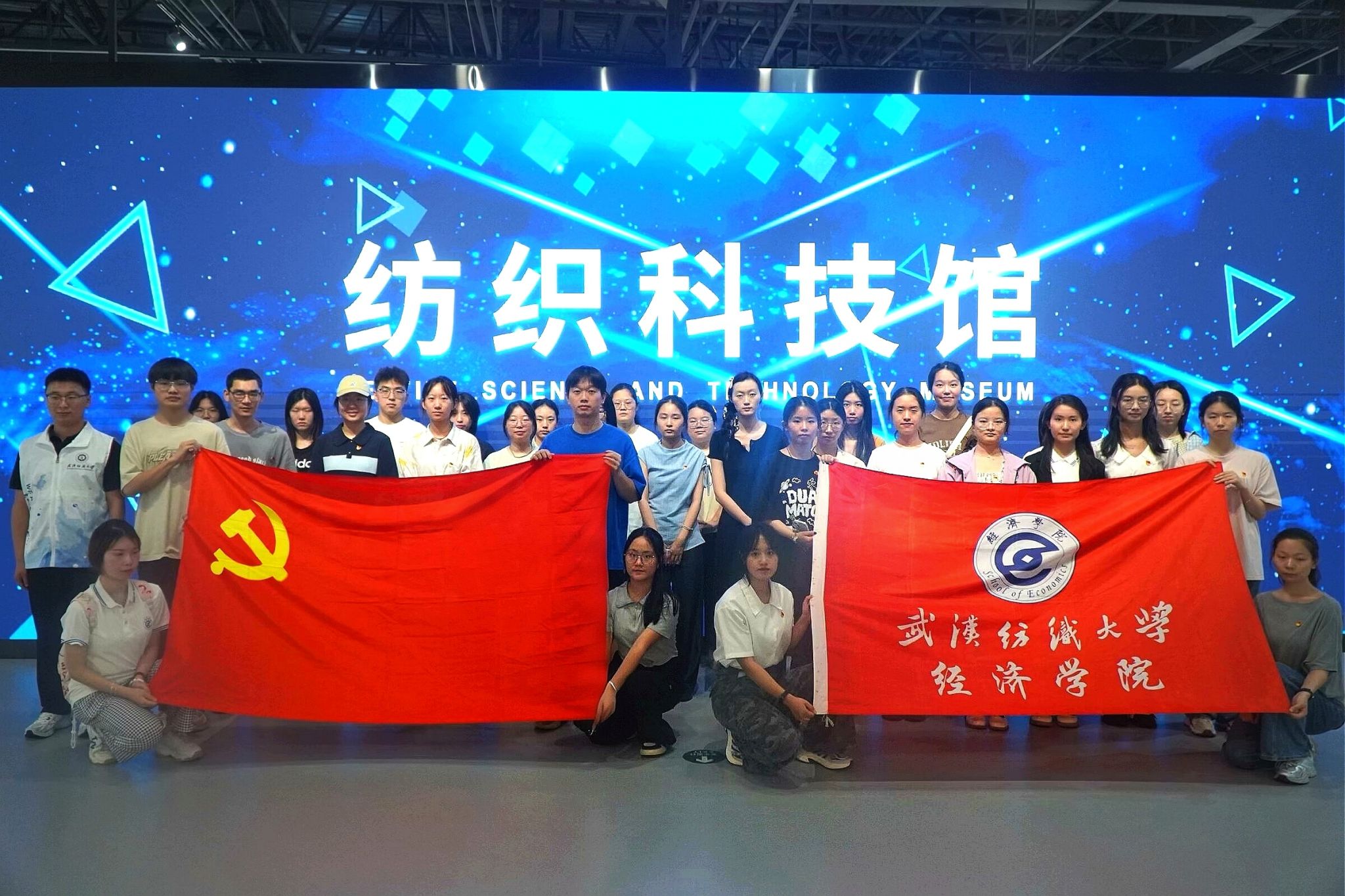 随后,支部全体党员有序步入纺织科技馆。馆内陈列的丰富纺织历史文物、现代化的纺织设备和前沿的纺织技术成果,让党员们深感震撼。通过参观纺织缘、传统纺织、现代纺织、大纺织、超纺织、未来纺织等分区,党员们切身实地感受到纺织产业的深厚底蕴,以及学校在学术科研、人才培养、产学融合等方面取得的成就。从“历史的照片”到“鲜艳的红旗”;从新石器时代的古老骨针,到现代航天服的高科技内衬织物,一件件展品讲述着纺织产业的历史故事,串联起纺织的印记,鼓舞同学们不断提升专业素养和综合能力,坚定理想信念,接续传承“自强不息,经天纬地”的纺大精神。