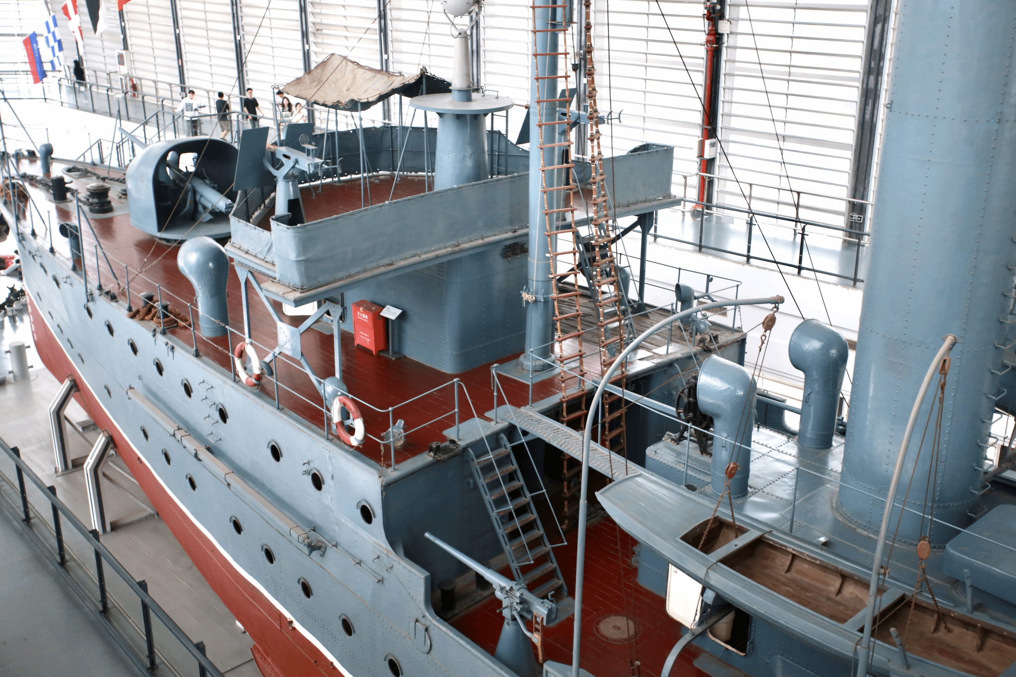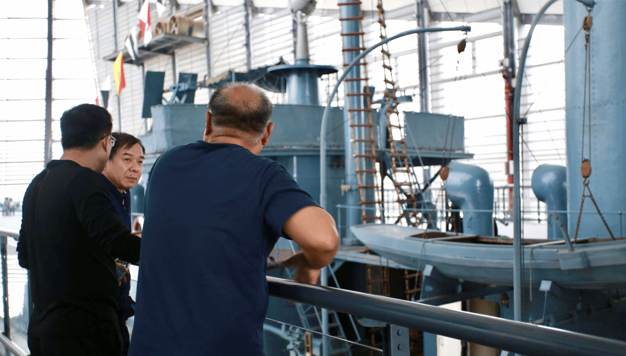 在参观过程中,师生党员们认真阅读展板上的文字介绍,详细了解了中山舰的历史背景、建造过程以及在抗日战争中的英勇事迹。中山舰是中国近代海军史上的一艘重要军舰,它凝聚了当时国人的智慧与汗水、见证了中国海军的艰苦奋斗和英勇抗争,承载着丰富的历史文化价值。在博物馆内,全体成员亲眼目睹了中山舰的雄伟身姿。从指挥舱到炮塔,从生活区到机舱,每一处都透露出那个时代海军人的生活状态和工作氛围。这些直观的历史痕迹,使得抽象的历史知识变得生动具体,展现了中山舰在抗日战争中的辉煌历程,让师生们对中国近代海军的历史有了更加直观的了解。