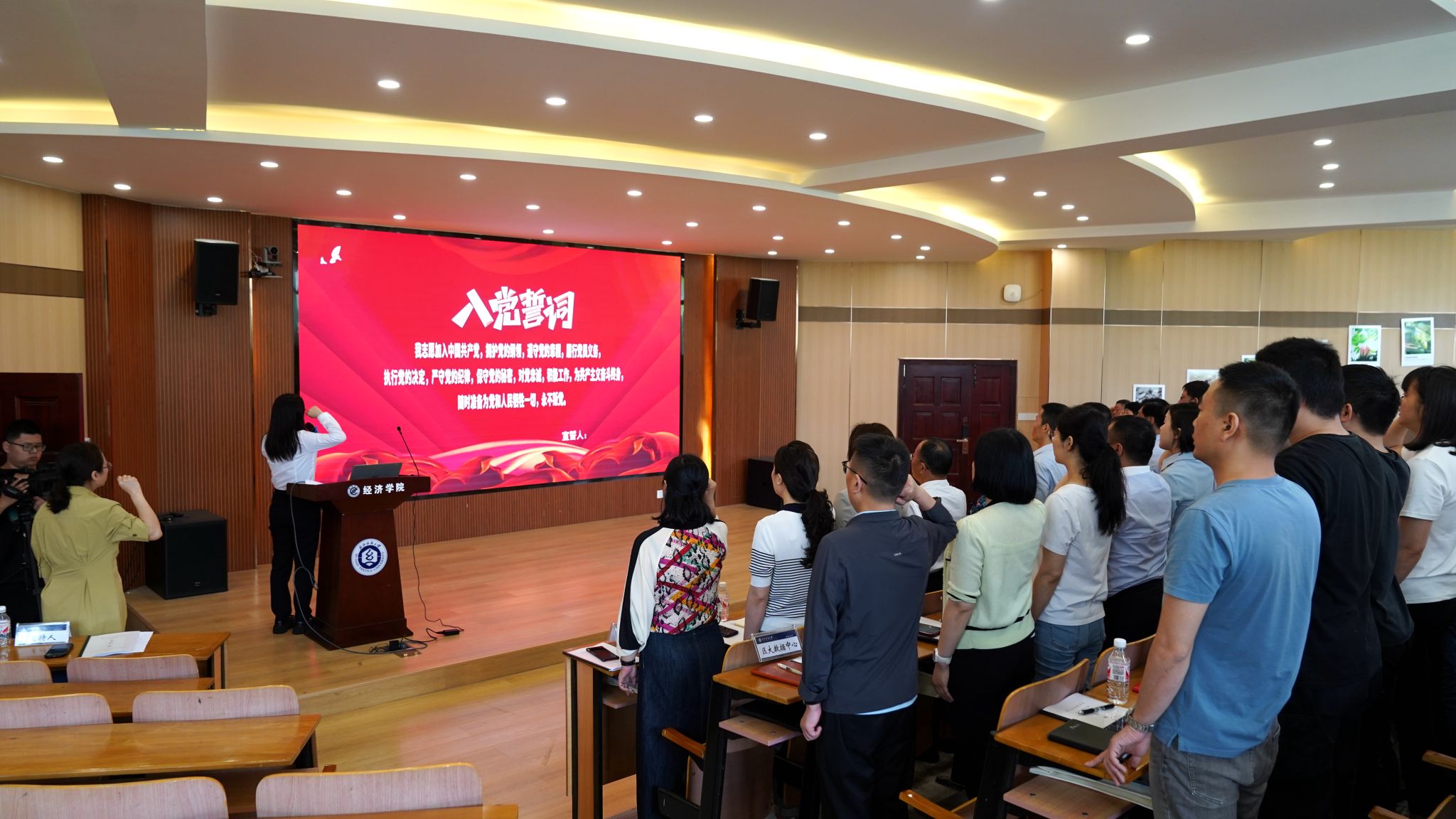 在区总工会相关同志带领下,全体党员重温入党誓词,面对鲜红的党旗,高举右手,全体党员再次许下铮铮誓言:“我志愿加入中国共产党,拥护党的纲领,遵守党的章程……永不叛党。”铿锵有力的誓言,使在场的每一位党员都重新接受了心灵洗礼,进一步强化了作为一名共产党员的责任感和使命感。随后集中深入学习习近平总书记近期重要讲话精神和省、市、区相关会议精神。