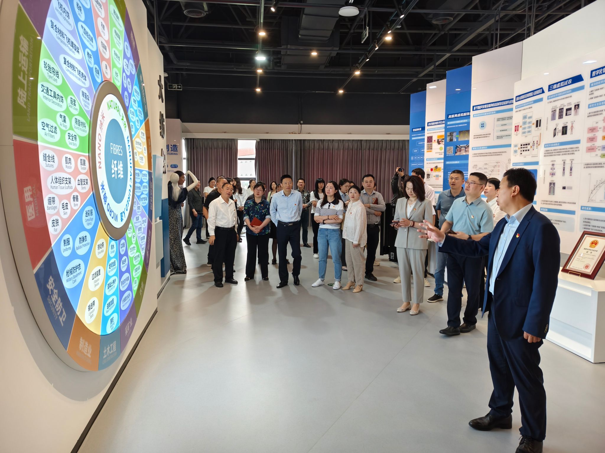 全体成员参观了纺织新材料与先进加工技术国家重点实验室,感受了浓厚的科研氛围。在纺织科技馆参观学习,党员们接受了一次生动的有关纺织历史文化、纺织新型材料与纺织科技与未来的知识洗礼,对我校的科研实力与科研成果有了一个全新全面的认识,也更深感悟了高校作为创新、人才策源地,助力国家高水平科技自立自强的重要作用。在图书馆文库主题书展前,全体成员开启了一场沉浸式的文化洗礼。