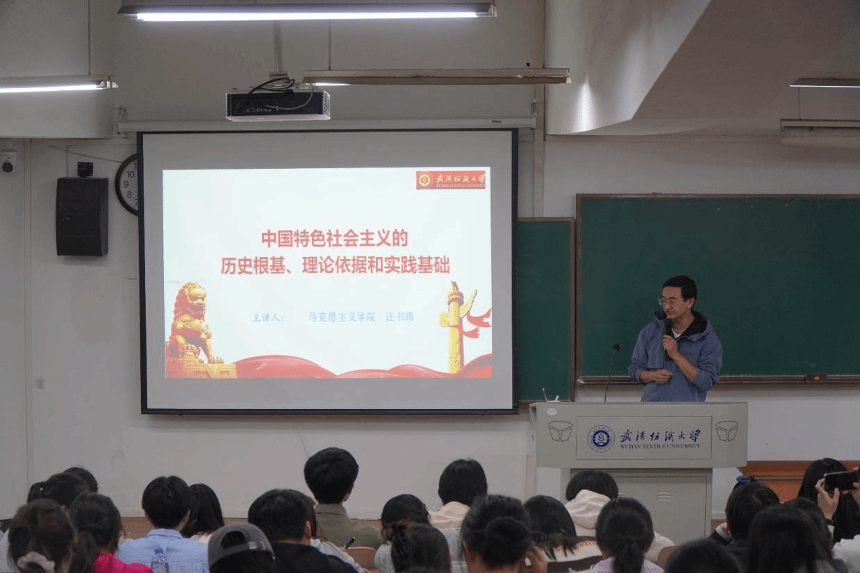 汪书路以《中国特色社会主义的历史根基、理论依据和实践基础》为题,结合党史、中国史中不同的人物、事例,系统梳理了社会主义在中国不同历史时期所蕴含的具体内涵以及波澜起伏的发展脉络。随后,他从“马克思、恩格斯的科学社会主义思想”的奠基,到“列宁的科学社会主义思想”的拓展,再到“毛泽东对科学社会主义的创新发展”的升华,条分缕析地解读了中国特色社会主义的理论依据,同时清晰透彻地阐述了中国特色社会主义理论命题从提出到逐步发展的演进历程。