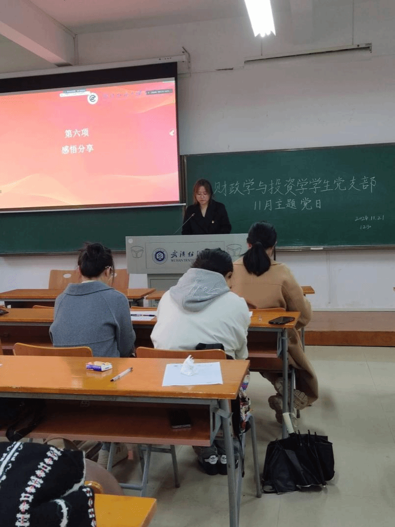 活动中,各支部围绕“促进高质量充分就业”话题,以毕业年级党员为重点关注对象,深入分析当前就业形势和面临的突出问题,研究促进高质量充分就业的思路和举措。支部书记带领学生党员集中学习了习近平总书记在文艺工作座谈会上的重要讲话,并深刻领会习近平总书记本月在湖北考察时释放的重要信号,引导学生党员要以习近平文化思想为指引,坚决做到“两个维护”,更加铆足干劲学习贯彻党的二十大和二十届三中全会精神,在推动发挥湖北在中部地区崛起中的重要战略意义、谱写中国式现代化湖北篇章中担当作为、奋勇争先、开拓创新。最后,学生党员发表感悟,交流心得。