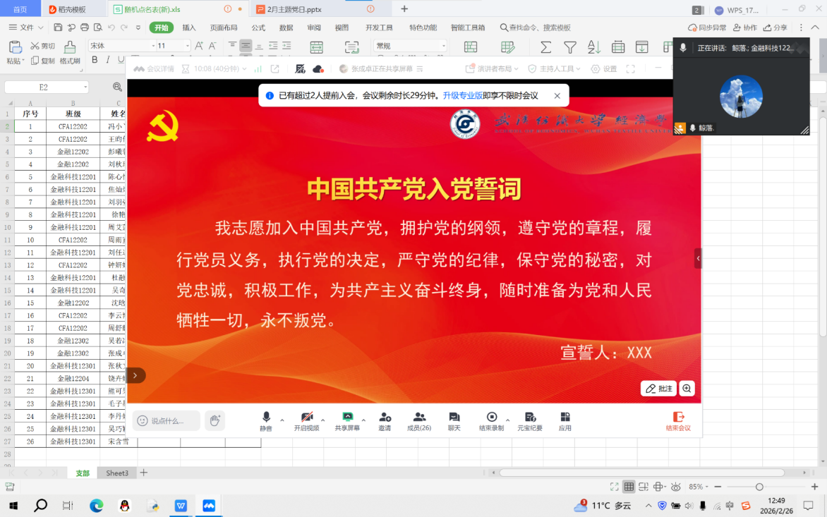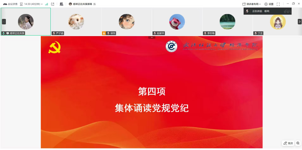为进一步巩固拓展主题教育成果,深入学习贯彻党的二十届四中全会精神以及习近平总书记系列重要讲话,引导学生党员强化理论武装、锤炼党性修养,2月25日至27日,beat365英国官方网站各党支部分别于线上组织开展2月份主题党日活动。学院全体学生党员及部分教工党员参加,各党支部书记主持会议。