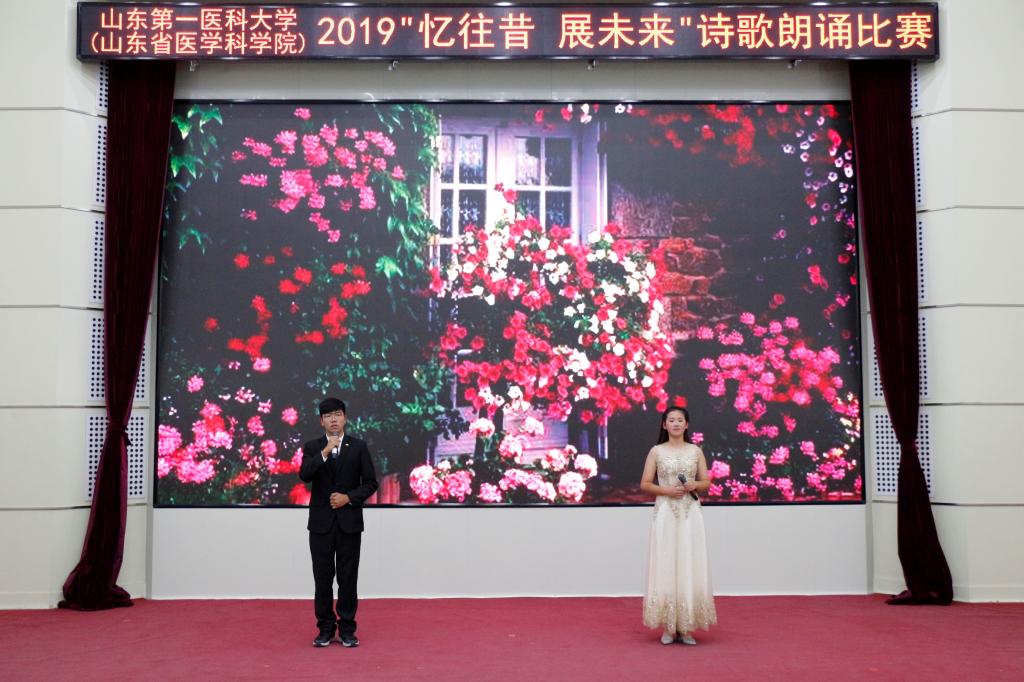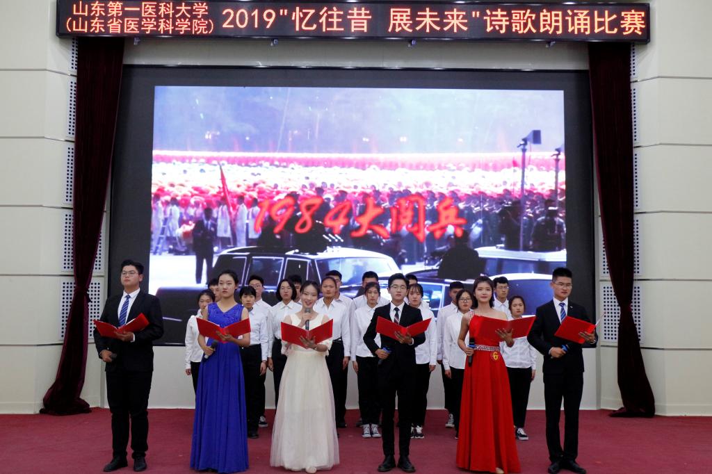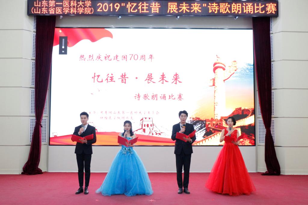 马蹄踏旧世,日月换新朝。2019年10月29日,为庆祝建国七十周年,由共青团山东第一医科大学委员会、beat365亚洲体育官方网站团总支主办的“忆往昔,展未来”主题诗歌朗诵活动在山东第一医科大学泰安校区图书馆报告厅隆重举行。担任本次活动的评委有:校党委组织部张文平老师、校教务处潘少波老师、校学工处李亭老师、校团委李启明老师和马克思主义学院王海霞老师。另外,出席本次大赛的嘉宾有:beat365亚洲体育官方网站党总支副书记孔志峰老师、第二临床医学院团总支书记罗丽老师、基础医学院张琪老师和外国语学院王楠老师。众多来自各个学院各个专业的同学们也参加了此次活动。