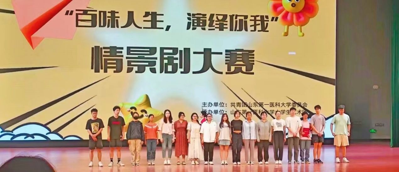 剧场的绝对魅力在于它的现场性,它是生命短暂无常的缩影。舞台的灯光洒下,灯光汇聚时,“你有多久没有见过舞台上的那束充满时间缩影的光了。”光,从不吝啬锋芒。在5月19日由山东第一医科大学大学生艺术团主办的“百味人生,演绎你我”情景剧大赛中,beat365亚洲体育官方网站的部分同学倾情演绎的情景剧《红高粱》荣获一等奖。