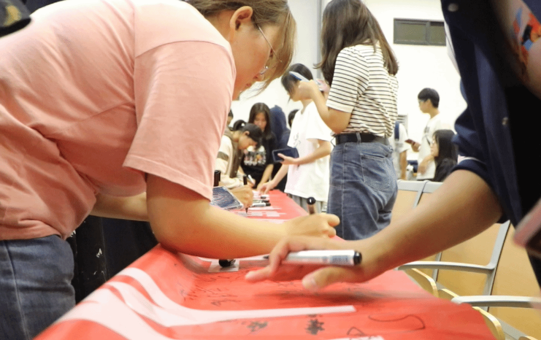 宣讲结束后,同学们积极地拿起笔,在横幅上认真而庄重地签下了自己的名字。一笔一划间是对口腔健康的重视,体现同学们对健康牙齿的追求,展现出作为口腔学子的自信与骄傲。鲜艳的红色条幅上点点笔墨浮现,是对自己的督促,更是能够做好口腔保健工作的决心。