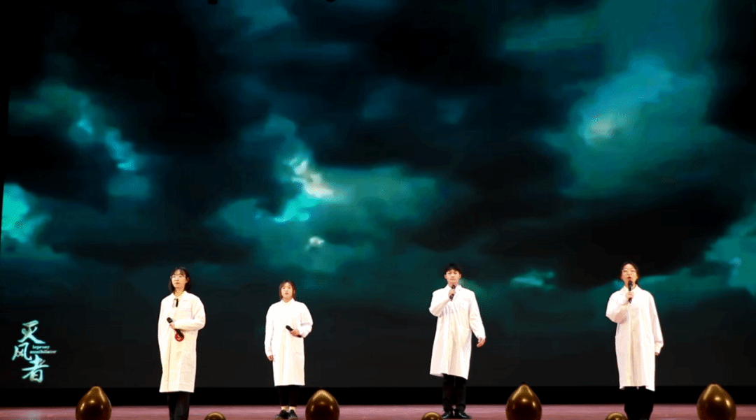 愉快的中场环节过后,默剧《谁是小偷》给大家带来许多欢乐的同时又引起大家的深思;歌曲《妈妈的话》勾起了大家对童年的回忆,使大家想起了与妈妈相处的点点滴滴;歌曲《明天会更好》中独唱与合唱交织,同学们用歌声向大家展现了一幅美好的未来画卷;朗诵《灭风者》向大家诉说了前辈们用生命对抗麻风,保百姓之安康的感人故事,现场全体人员共同进行了医学生宣誓,坚定了大家踏实学习,除人类之病痛,助健康之完美的决心;大家一同唱响结尾曲《我们的明天》作为礼物送给我们的明天,为这个欢乐而又难忘的夜晚画上圆满的句号。